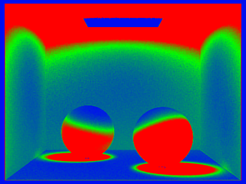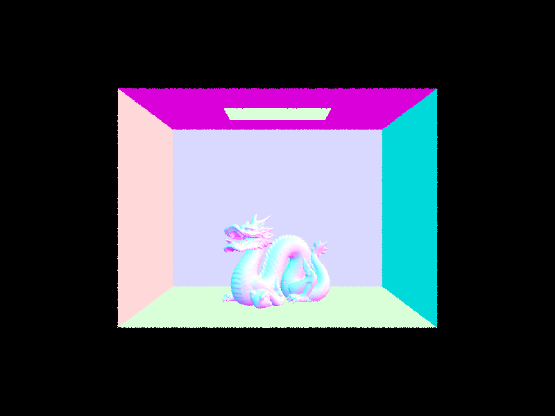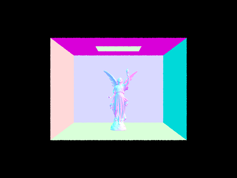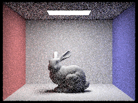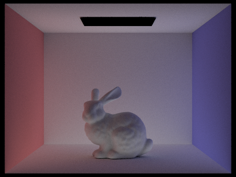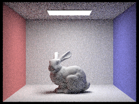 In the figure above, we see CBbunny.dae rendered once with only direct lighting, and once again with only indirect lighting.